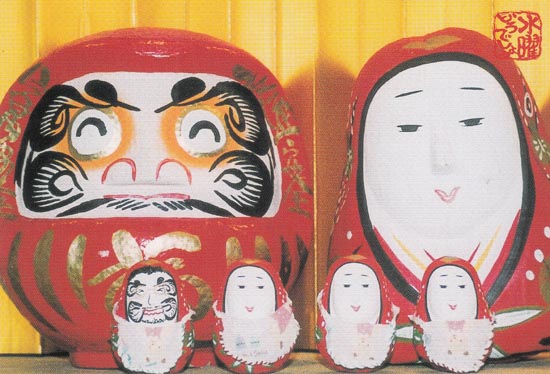 お父さんだるまは高崎のダルマ。お母さんの姫だるまは飛行機に乗せちゃったからへっこんじゃった。少し傾いているのはそのせい。四つ子で左端が「忠寿」くんですね。大泉洋さん作ですからね。後藤久美子さんによると、姫だるまの黒いところ、墨ですね、は2代目のお母さんの明子さんが描くことになっていて、他人に描かせたのは洋さんが最初らしいです。すごいですねぇ。現在は息子さんのお嫁さんがお手伝いをしているとのこと。まだまだ続くね。いいことだなぁ。
