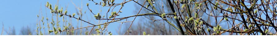 | 4月1日お昼頃、置戸町境野、旧駅舎裏、常呂川の河川敷の木にネコヤナギ。 |