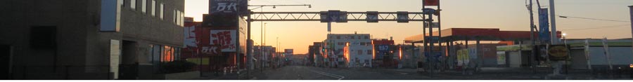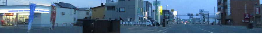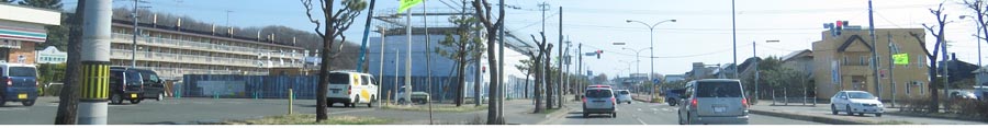 | 4月14日早朝、メッセ前の西6号線、国道39号交差点から東相内方向。写真左が南大通り側。 |
