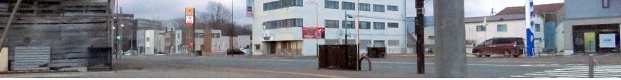 | 4月3日早朝、本町の北4条通り国道39号交差点から左、五差路方向。写真右が緑園通り側。 |