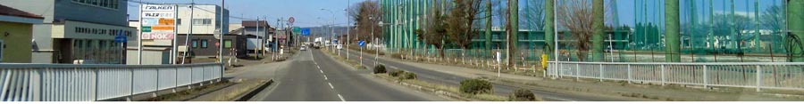| 4月7日午前10時過ぎ、豊地大橋の西8号線を国道39号方向。前方の交差点を右折で南大通り。右斜め奥に三輪小学校。 |