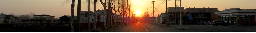 | 4月15日早朝、北光中学校グラウンド裏の通りを北光神社方向。写真右が北上・上常呂側。 |