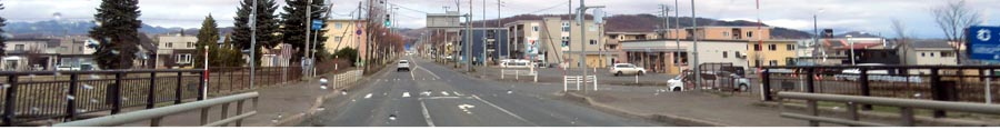 | 4月29日早朝、国道39号を緑園通り交差点から北見駅方向。写真奥が五差路。 |