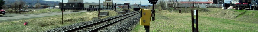 | 4月14日午前10時半頃、小泉の東9号線踏切から北見駅方向。写真右が国道39号側。 |