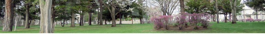 | 4月27日午後4時過ぎ、北見市民会館前の公園。写真左奥が北見駅方向。 |