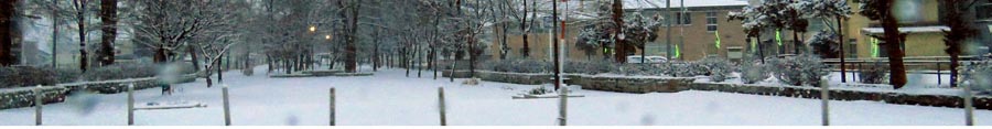 | 12月5日早朝、北2条通り西4丁目、北見眼科(旧はっとり医院)から西3丁目通り方向。写真奥に北見神社。 |