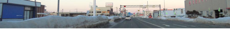 | 2月6日午後、国道39号、大通り東4丁目交差点から端野方向。ここを右折すると東4丁目アンダーパス。 |