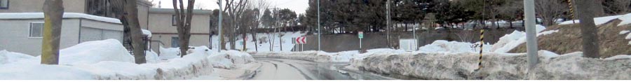 | 2月18日午後3時過ぎ、東陵町の夕陽ケ丘通り、道立体育館前。進行方向奥が青葉通り。 |