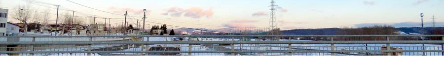 | 2月20日早朝、とん田通り、錦町の南岸通り交差点から野付牛自動車学校教習コース越しに仁頃山方向。 |