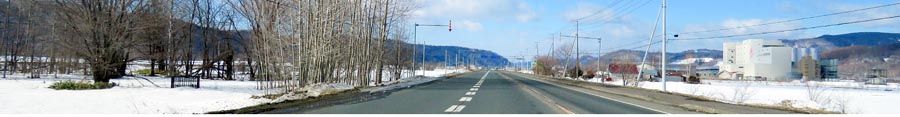 | 3月1日午前、相内の国道39号、北見市農協の小麦乾燥倉庫前から留辺蘂方向。 |