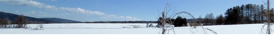 | 3月1日午前、置戸町拓実。進行方向右の旧拓実小学校側。山の向こうは十勝。 |