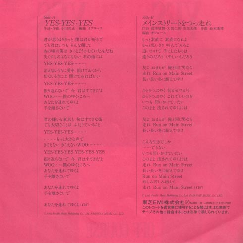 オフコースの鈴木さんがいるときの最後のシングルかな。この後お休みするんだよねぇ、確か。この曲はイントロがないんだよね、すぐ「君が思うよりきっと」って入るだよなぁ。さびの「振り返らないで、」からは、あぁ小田さんだなぁって感じ。いい曲ですよねぇ。でもこんなに真っ赤にする必要あったんですかね?金持ちですね。