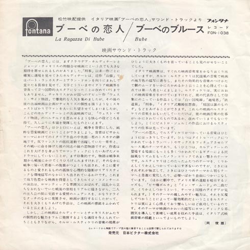 イタリア映画のサントラですね。CCことクラウディア・カルディナーレさんが主役。サインをもらった記憶があるけど、違ったかなぁ?解説の岡俊雄さんは、映画評論家で、札幌の出身だそうです。文章もわかりやすく書かれていますね。素晴らしい。