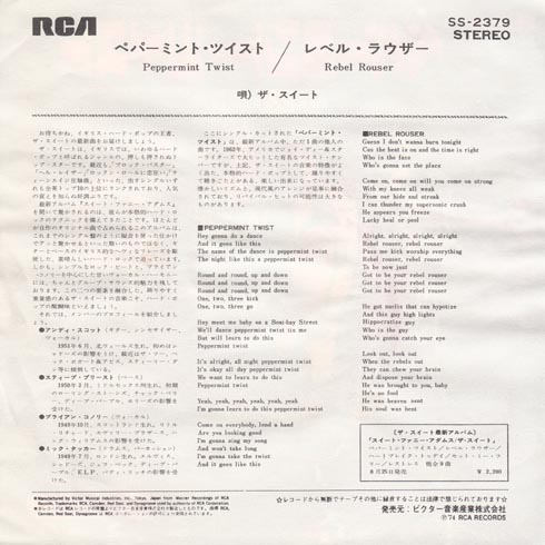 シングルバンドのスイートの曲。Youtubeで見てもわかるけど、演奏にやる気がない。どうでもいいんですね。この曲はジョイディー&スターライターズのロカビリーっぽい曲が元曲。それをロック調のアレンジしたんですな。それは評価しますけど。歌詞もかなり変えているような。B面もなかなかいいけど。どうもなぁ。