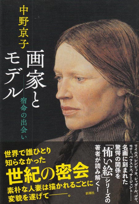 画家とモデル こちらは新潮社。中野京子さんモテモテですねぇ。この表紙はワイエスのヘルガ。ヘルガさんは近所の人妻。15年にもわたりこっそりこの人妻の240点以上の絵を描いていたという。もちろんヌードもある。ポンチョさんはこのワイエス展を東京で見たことがあります。たまたま別の用事で行ってたらやっていたという。どこでやっていたのかはわからないけど、本格的な絵画展でした。なんか講師の方が説明しているのを来場者は座って聞いていたけど、ポンチョさんはそんな説明はいあらないから実物を見たかった。今思えばそこに来場者がたまっていたので絵を見る人が少なかったというのがラッキーだった。この女性の絵ばかりだったけど、その時は奥さんかと思っていた。違ったんですねぇ。きっとじっと動かないしゃべらない人だったんですね。奥様は活発な人でワイエスの生活のすべてを管理していて絵を描くことに集中させていたそうな。そうかなぁ?別の思惑があるよね、きっと。 |