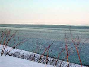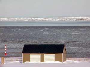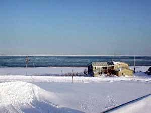 | 網走は接岸したそうですが枝幸もきのう「流氷初日!」を迎えました。平年より6日早く昨年より10日遅いそうです。レーダーで一番近づいていそうな岡島まで行ってきました。(BT) |