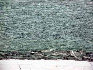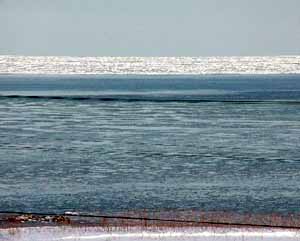 | 岸から流氷までは「はすの葉」氷で繋がっています。 |