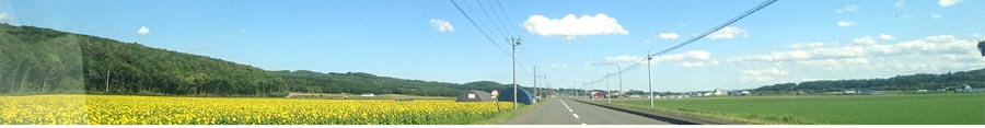 | 道々北見置戸線の置戸町豊住。左はひまわり畑、進行方向奥が置戸町境野・訓子府・北見。 |