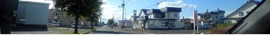 | 置戸町の国道242号バイパス交差点から北光の坂方向。 写真右が常呂川・学友橋・置戸小学校側。写真奥は境野・訓子府方向。 |