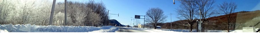 | 12月5日朝、道々北見津別線から左折して津別市街方向へ。写真左が北見側、写真右が国道240号の交差点方向。 |