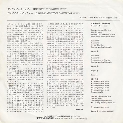 ポール・マッカートニー&ウイングスの曲。アルバムには入っていなかった。でもPVはあった。Youtubeで確認したら、1930年代?の格好で演奏しているんだそうな。ディスコ調のベースラインがなんともいいけど、この次のバック・トゥ・ジ・エッグには入らなかった。PVではヤマハのBBを使っているポールさん。多額のお金が動いたと推測されます。ポールが日本のベースを選んで使うことはないと思われますから。