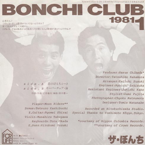 よく見たらプレイヤー、つまり演奏はムーンライダースだったんですね。すごいですねぇ。でも今さ、山本さんとか川崎さんって言われてもねぇ。誰だかわかんないよね。時事ネタってそういうことだからね。当時のアフタヌーンショーという番組の山本耕一さんと川崎敬三さんのパロディだからねぇ。さっぱりですね。でも当時は売れっこだからかなり売れたと思いますね。今でも現役のコンビ。THE SECOND 〜漫才トーナメント〜2025ファイナリストらしいです。