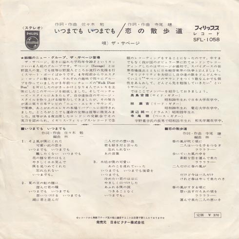 ザ・サベージっていうグループサウンズのバンドのデビュー曲でした。聞いてみるとなんか聞いたことがあるなぁ。むかし積水ハウスのCMに使われたこともあるんだそうな。そうかもしれない。メンバーに寺尾聡さんがいましたが、この曲ではなく、B面で歌ってました。サベージって野蛮人って意味って書いていますが、みなさん髪の毛も短く好青年っぽいのでした。寺尾聡さんだけ、宇野重吉の長男って紹介されている。奥島さんってヤマハの人らしい。