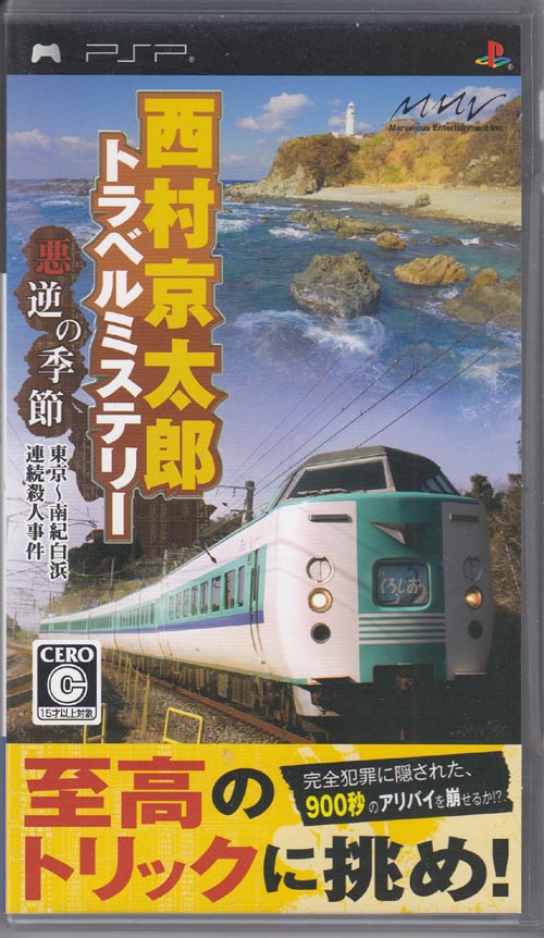 悪逆の季節 東京ー南紀白浜連続殺人事件ってことでね、西村京太郎さんはファンなので買ってみましたが、なんだかわからないうちに捜査終了的な終わり方でした。攻略サイトを見ながらやったらあっという間に終わってしまう。まぁ画面がきれいだからいいのかなぁ。この前買ったオホーツクに消ゆ、のほうがすごく楽しかったなぁ。パッケージは381系「くろしお」というんだそうな。今はこの形はないのでレトロですね。